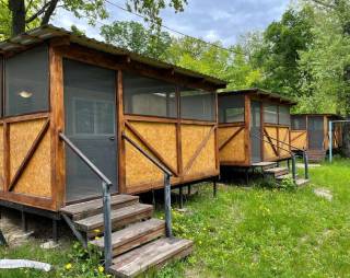 Гости базы отдыха размещаются в домиках, рассчитанных на трех, четырех и одиннадцать человек. Также на территории комплекса имеется площадка для кемпинга. Чтобы отдыхающие могли самостоятельно приготовить пищу, на территории имеется кухня и места с мангалами. К услугам гостей баня и душ и горячая вода. Для стоянки автотранспорта оборудовано место для парковки.