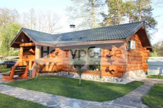 Уникальный двухэтажный коттедж из натурального деревянного сруба располагает к уединенному отдыху. С балкона второго этажа открывается живописный вид на озеро. Для комфорта гостей предусмотрены три двуспальные кровати, зона отдыха с двуспальным раскладным диваном. Душевых комнат две на первом и втором этажах, каждая укомплектована туалетными принадлежностями. В числе удобств финская сухая сауна. Кроме коттеджа на территории комплекса имеется отапливаемый «Чайный домик» с настоящим камином и мягкой мебелью. В распоряжении гостей закрытая территория с беседкой и мангальной зоной, предоставляется мангальный набор (посуда, шампуры/решетка). К услугам гостей частная парковка. В коттедже ежедневно производится уборка, смена белья и полотенец производится по запросу. Фен предоставляется по запросу.