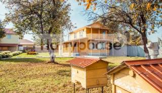 Большой деревянный дом с тремя раздельными номерами. Есть общая кухня и общий душ. Рядом с домом оборудована мангальная площадка.