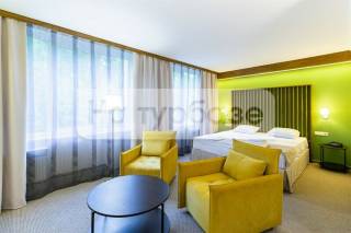 Комфорт; 2-местный 35 к.м. Двухкомнатный номер со собственной ванной комнатой и отдельным входом. Номер оснащендвуспатью кроватью размера king-size , находится на первом этаже. В номере имеется спутниковое ТВ, кондиционер, отопление. Количество номеров: 5 Площадь номера: 24 Вид из номера: / или частичный вид
