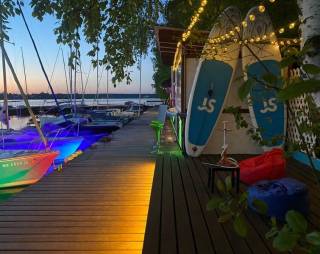 сауна; причал для лодок и катеров; охраняемая автомобильная стоянка для личного транспорта проживающих; банкетные залы и веранда открытого типа, предназначенные для организации вечеринок, свадебных мероприятий, конференций, презентаций и корпоративов; ночной развлекательный клуб; пункт проката. Возможен отдых на террасе, желающие расслабятся в сауне, проведут досуг в клубе. Зимой пункт инвентарного проката предоставляет снегоходы, а для любителей острых ощущений всегда имеются квадроциклы.