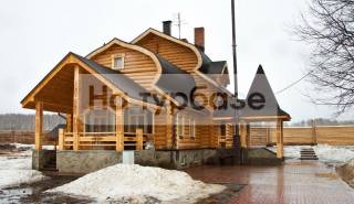 Просторный двухэтажный бревенчатый коттедж вместимостью 32 человека. В коттедже: 8 спален, 2 кухни, терраса, сауна и две душевые. Есть бильярд и караоке. Коттедж отлично подходит для проведения праздничных мероприятий.
