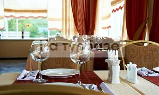 Само учреждение – достаточно велико и потому возведенного ранее одного ресторана было мало, потому на территории пансионата возвели второй ресторанный комплекс. В общей сложности оба они могут вместить до 270 человек – это и небольшие банкетные залы и диско-бар, со своим караоке и так далее. Если вы пришли отдохнуть с детьми – у нас есть своя организованная детская площадка.
