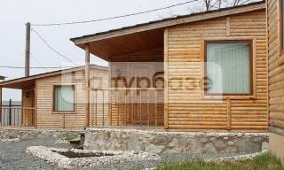 Уютный деревянный домик с террасой с видом на бухту, рассчитанный на двоих. Домик оборудован двуспальной кроватью и столиком со стульями, также есть холодильник и чайник.