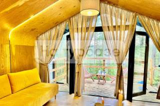 Комплекс принимает гостей и зимой, и летом и предлагает им уютные четырехместные коттеджи, в каждом из которых имеется камин с живым огнем. В теплое время года появляются дополнительные места за счет гостевых домиков типа «Шале».