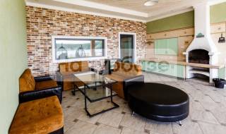 Крытая терраса 15 м2 с уличной мебелью, мангальная зона, мини-кухня (мини-холодильник, индукционная плита, микроволновая печь, чайник, посуда, приборы, бокалы), санузел с душевой, обеденная зона с барной стойкой, умная колонка, кровать 160/200, проектор.