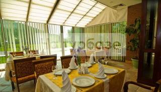 Собственный пляж протянулся вдоль берега почти на километр, часть его обустроена кабинками, навесами, зонтиками и шезлонгами.