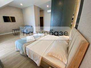 Мебель: - вешалка - диван - зеркало - комод - кровать двуспальная - кухонная мебель - прикроватные тумбочки - стол - стулья - шкафМини-кухняОборудование: - кондиционер - кофемашина - микроволновая печь - мини-холодильник - набор посуды - сейф - телевизор ЖК - электрочайникСанузел: - сауна - с душевой кабиной - тапочки - туалетные принадлежности - фен - халатСервис: - Wi-Fi бесплатно - смена полотенец - смена постельного белья - уборка номера