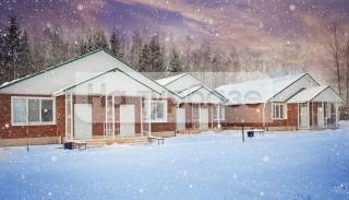 Размещение гостей осуществляется в комфортных домах, где собраны базовые удобства. Питание производится в кафетерии, за каждым постояльцем домика закреплен столик в течение всего времени проживания. Меню разнообразное, готовкой занимаются профессиональные повара. Среди яств представлены изделия из мяса, а также для вегетарианцев. Самостоятельно можно приготовить шашлык на летней кухне или в специально отведенных для этих целей мангалах.
