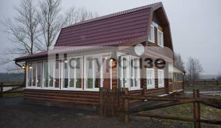 Большой трехуровневый дом, выполненный в английском стиле и рассчитанный на большую компанию от 10 до 25 человек. В доме оборудована гостиная комната с камином, кухонный уголок, 5 спален, 2 санузла с душем и игровая зона. Имеется отдельно стоящая финская сауна с верандой.